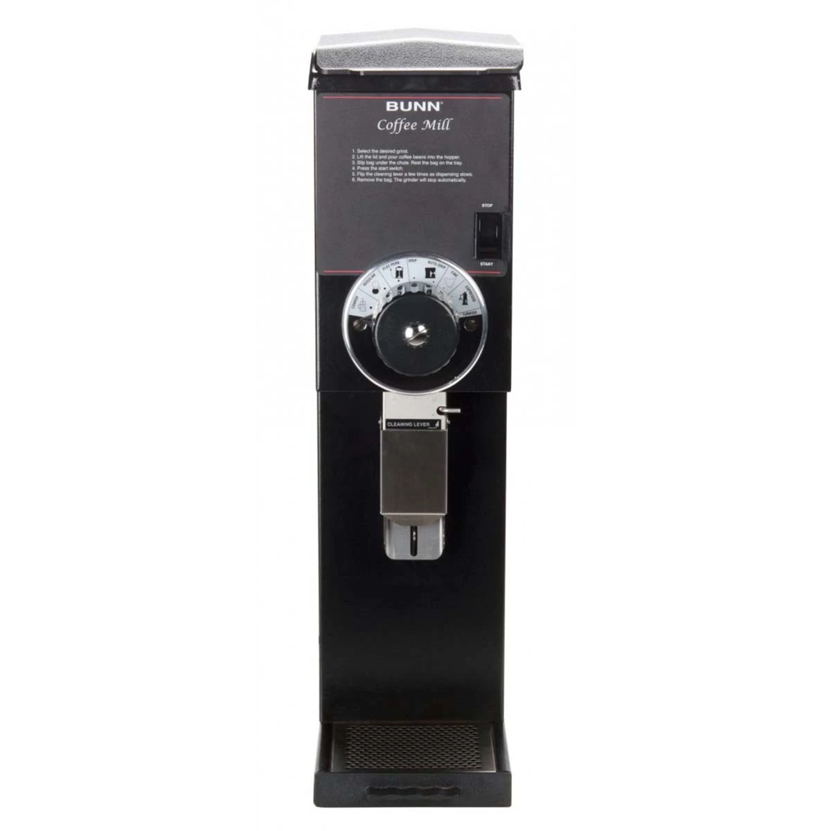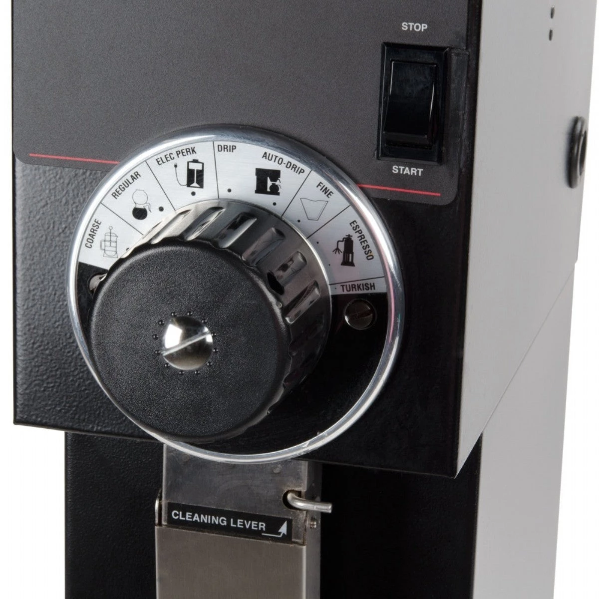 • Convenient cleaning lever ensures complete clean out of coffee from grind chamber.