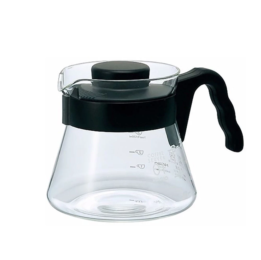 Well-built V60 range server 01 has a plastic handle that is wrapped around the neck of the glass server and provides a secure way to serve. It has a smart plastic air-tight lid that allows you to pour even when the lid is securely closed. The Hario V60 server offers a great way to hand brew and serve coffee.