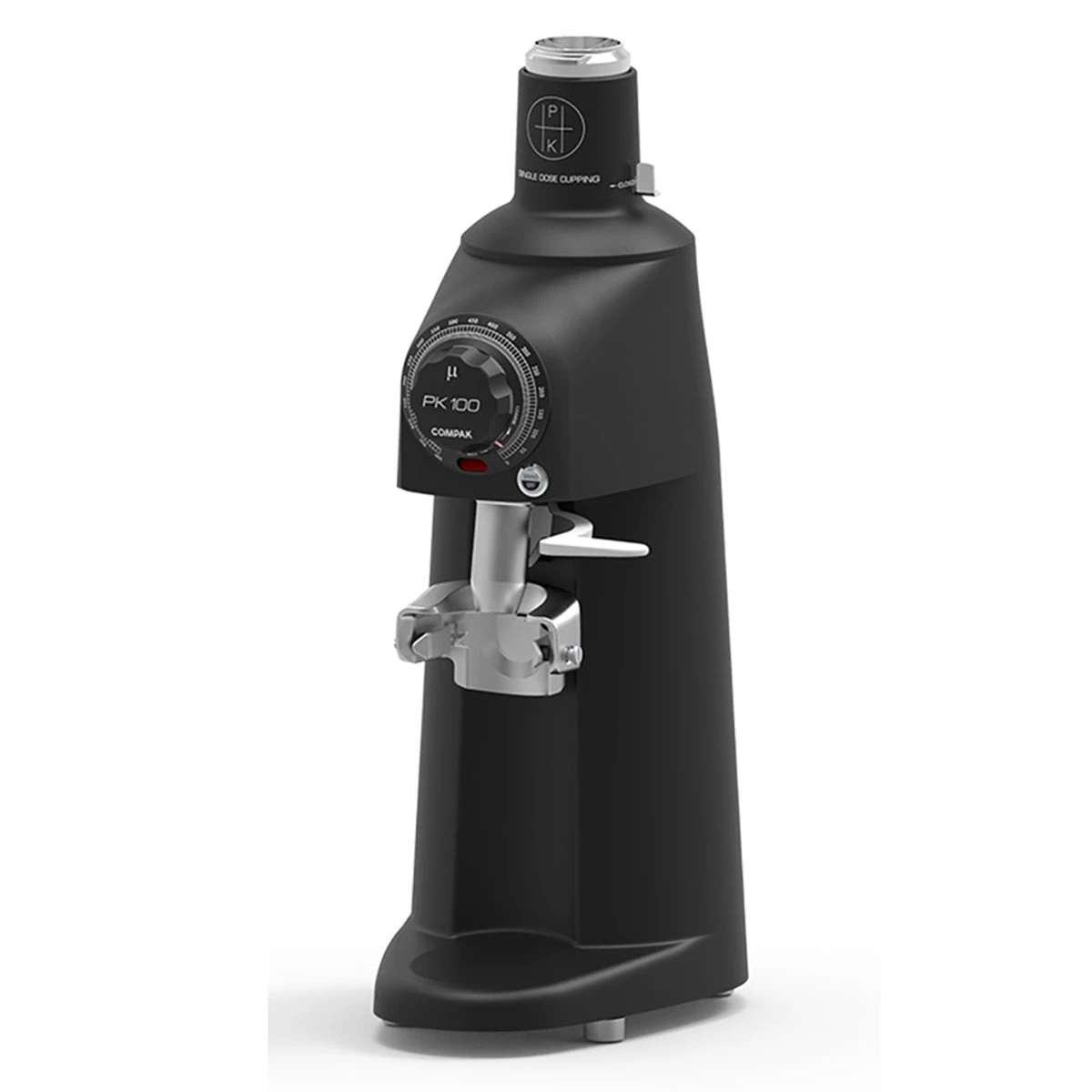 If you are using the PK100 for espresso, you have the added option of including a universal metal portafilter fork, with a neat click in place feature and a grind push activation button sitting just behind it, just like a traditional dedicated espresso grinder system.