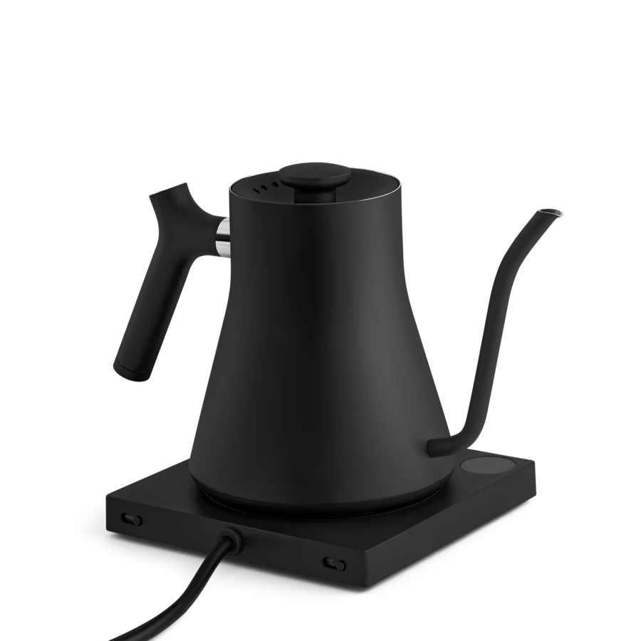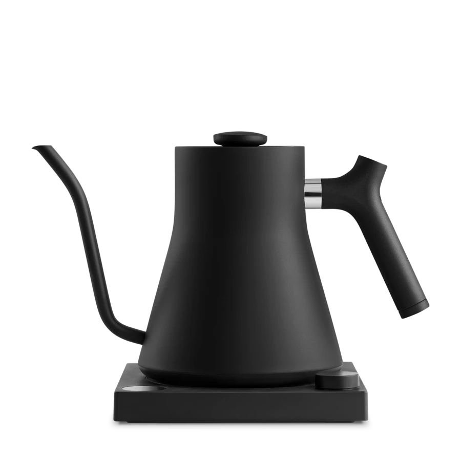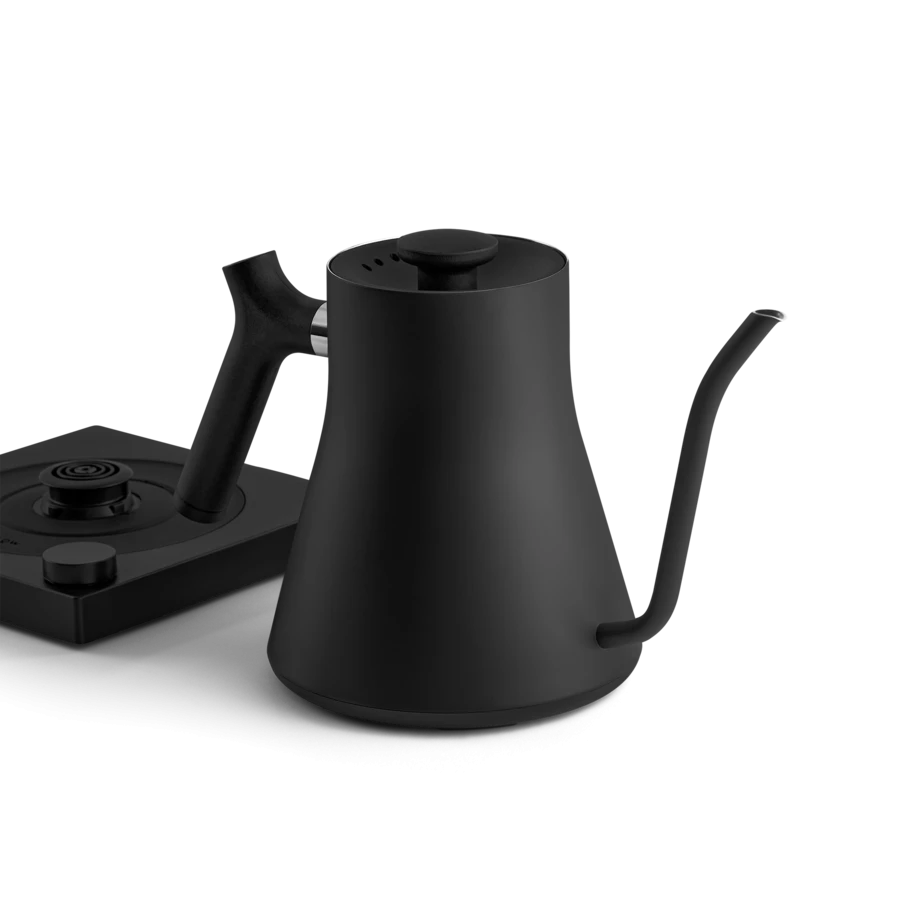 Featuring precision pour spout, variable temperature control, LCD screen, 60-minute hold mode, a brew stopwatch, and a small, minimalist base.