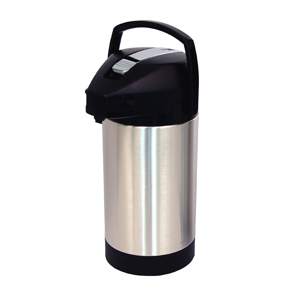 This is the 3L version of the Fetco Stainless Steel Lined Lever Airpot. This product is an economical, convenient and safe solution for light duty self-serve dispensing. Constructed of dual layer stainless steel, the vacuum sealed inner liner insulates and holds the beverage while the outer body layer protects the end user by staying cool to the touch.
