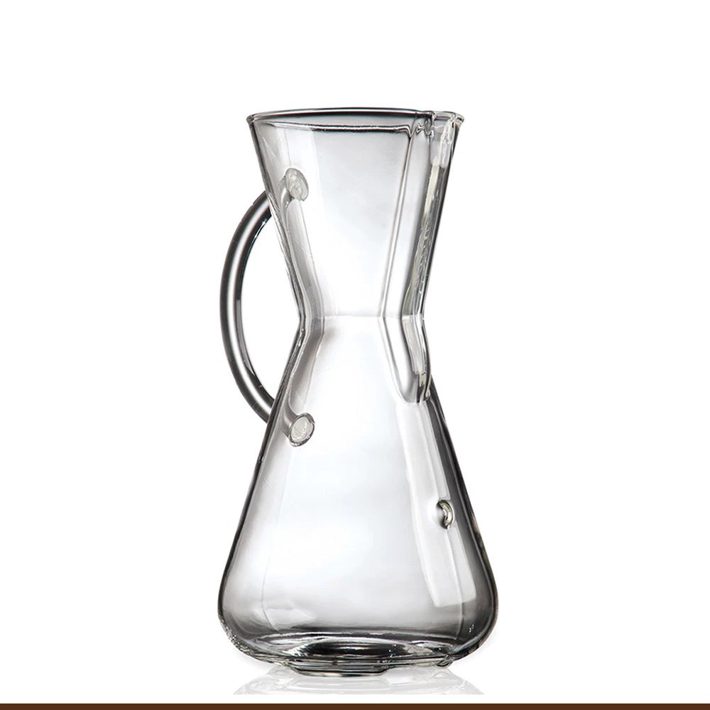 The Three Cup Glass Handle Series used together with the scientifically designed, patented CHEMEX® Bonded Filters, will guarantee that our pour over brewing process will deliver the perfect cup of coffee, without any sediments or bitter elements.