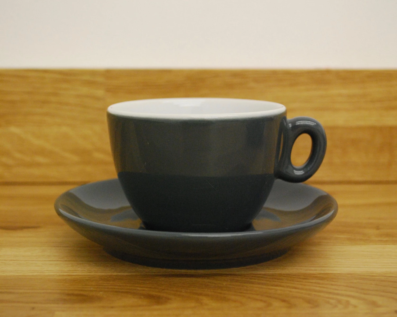 This is the Flat White / Long Black cup and saucer in the Luna design in Anthracite (Dark Grey).