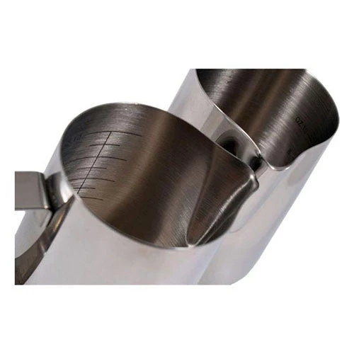 It’s a straight side design with a thin spout, designed to aid latte art.