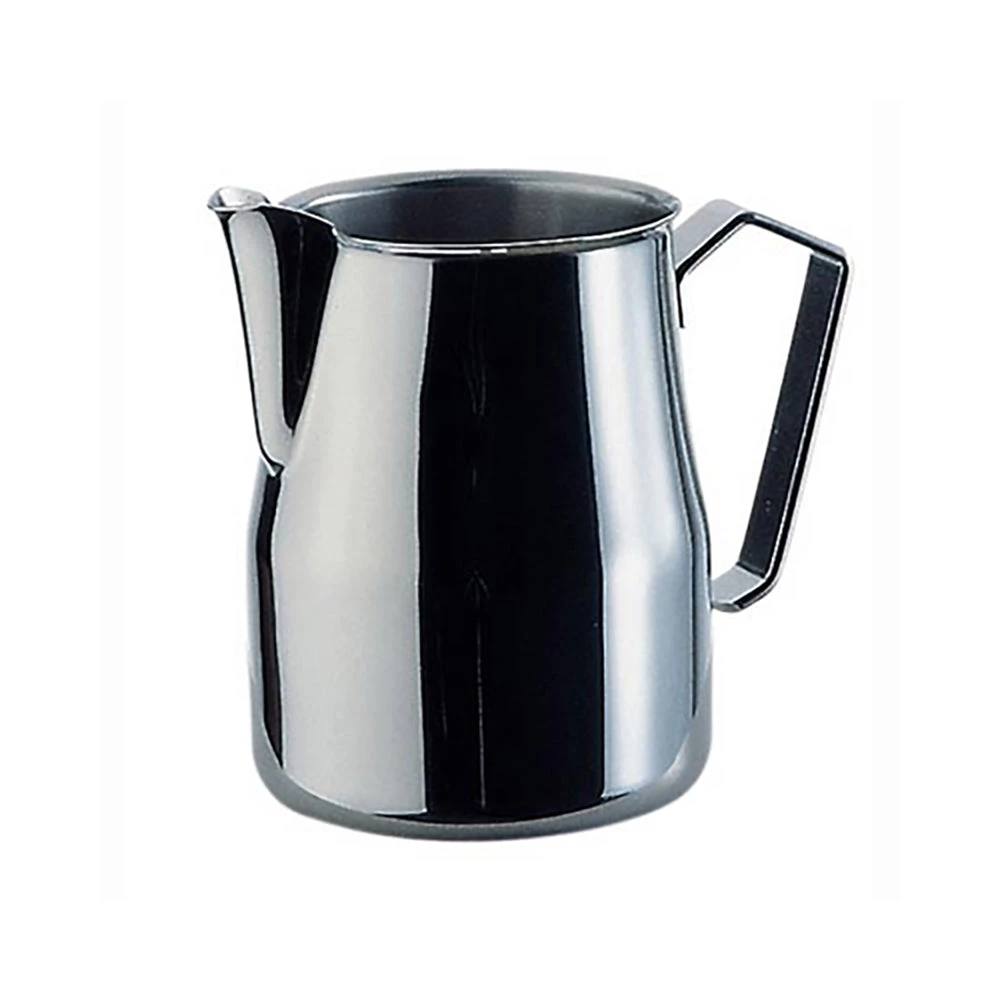 This is a Motta Europa milk pitcher in classic stainless steel.