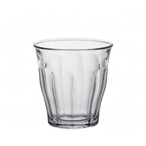 This is a classic 220ml / 7.5oz glass tumbler in the Picardie style made by Duralex France. Duralex glasses have become adopted by the specialist coffee industry, due to their quality, great shape and feel.