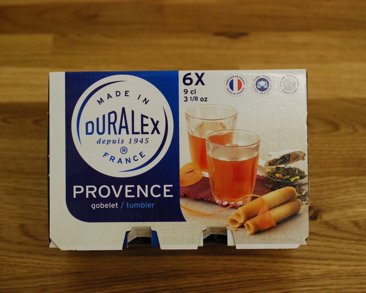 This is a classic 90ml / 3.1oz glass tumbler in the Provence style made by Duralex France. Duralex glasses have become adopted by the specialist coffee industry, due to their quality, great shape and feel.