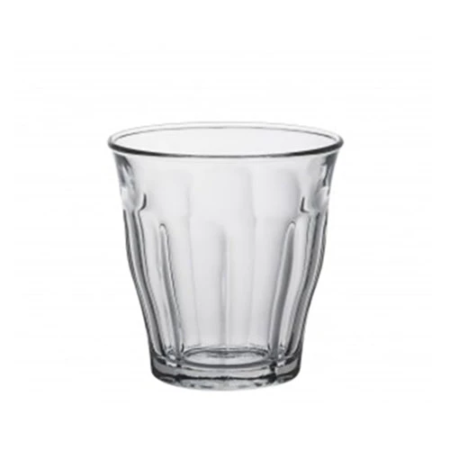This is a classic 130ml / 4.5oz glass tumbler in the Picardie style in the Picardie style made by Duralex France. Duralex glasses have become adopted by the specialist coffee industry, due to their quality, great shape and feel.