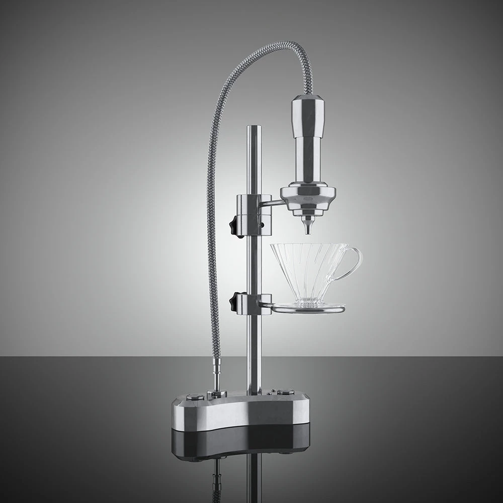 Brew by hand using one of the two included spray tips, or teach the machine up to 25 different recipes accessible at the touch of a button. Adjust flow rate to suit your brew method and extraction preferences. Each Pour-Over tap connects to one under counter module with water and communications cables. The stereo-sized module fits neatly under the counter with easy access to program recipes, adjust flow rate, and service the gear. The key points are: