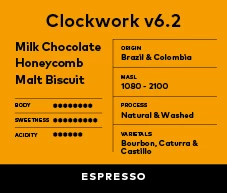Clockwork is made up of two seasonal lots, sourced specifically for this blend.