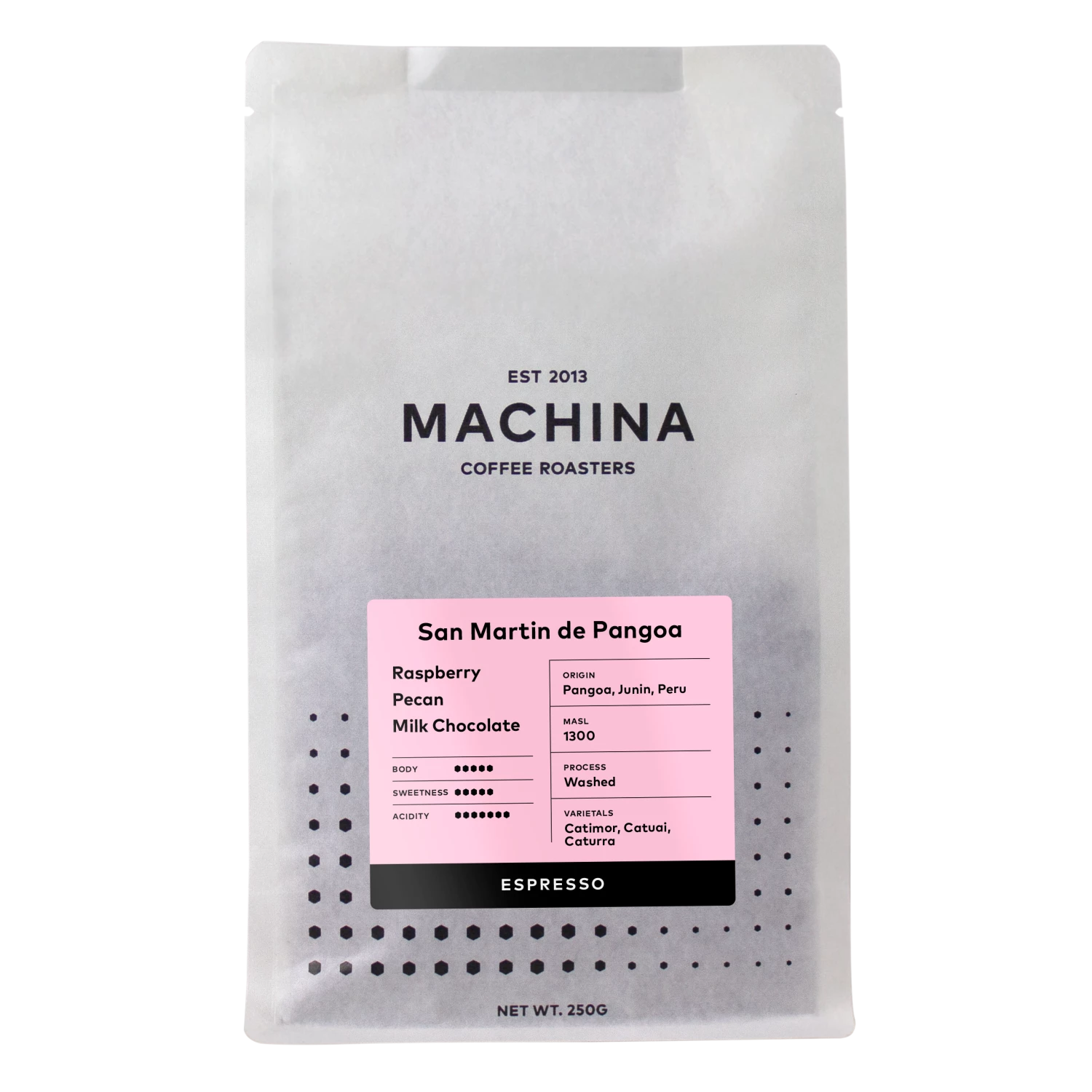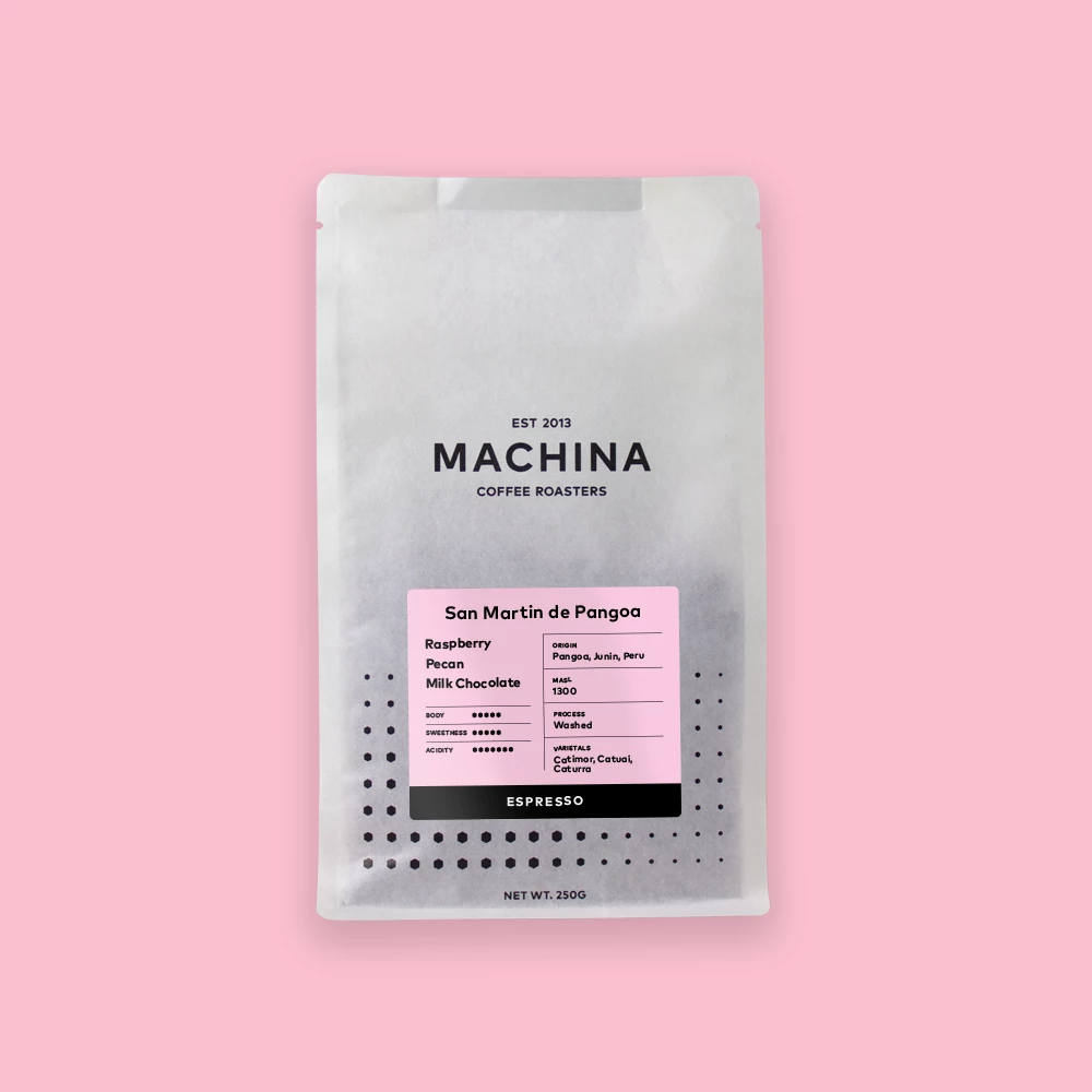 San Martin de Pangoa is a washed coffee from Peru – our first from this origin in 2022. It’s accessible, but not boring, with a present but soft red apple acidity that pairs nicely with a caramel sweetness. In terms of body, it’s neither heavy nor light, and will taste delicious pulled as espresso or infused in a cafetière.