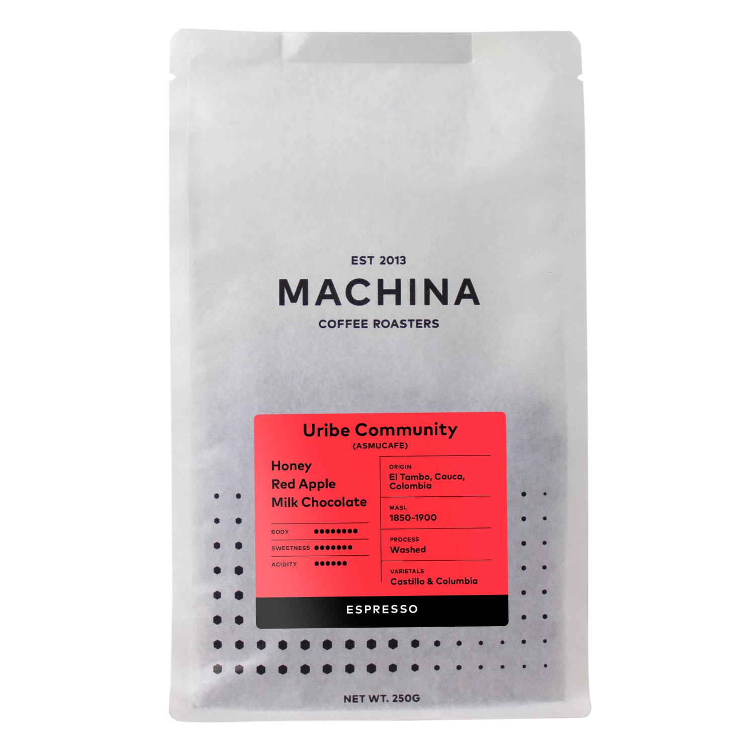 Uribe Community is another coffee from the wonderful ASMUCAFE Cooperative, whom we have now worked with for three years running. It’s an amazing quality regional lot of the Castillo and Colombia varietals from a women’s collective in El Tambo, Cacau in Colombia.