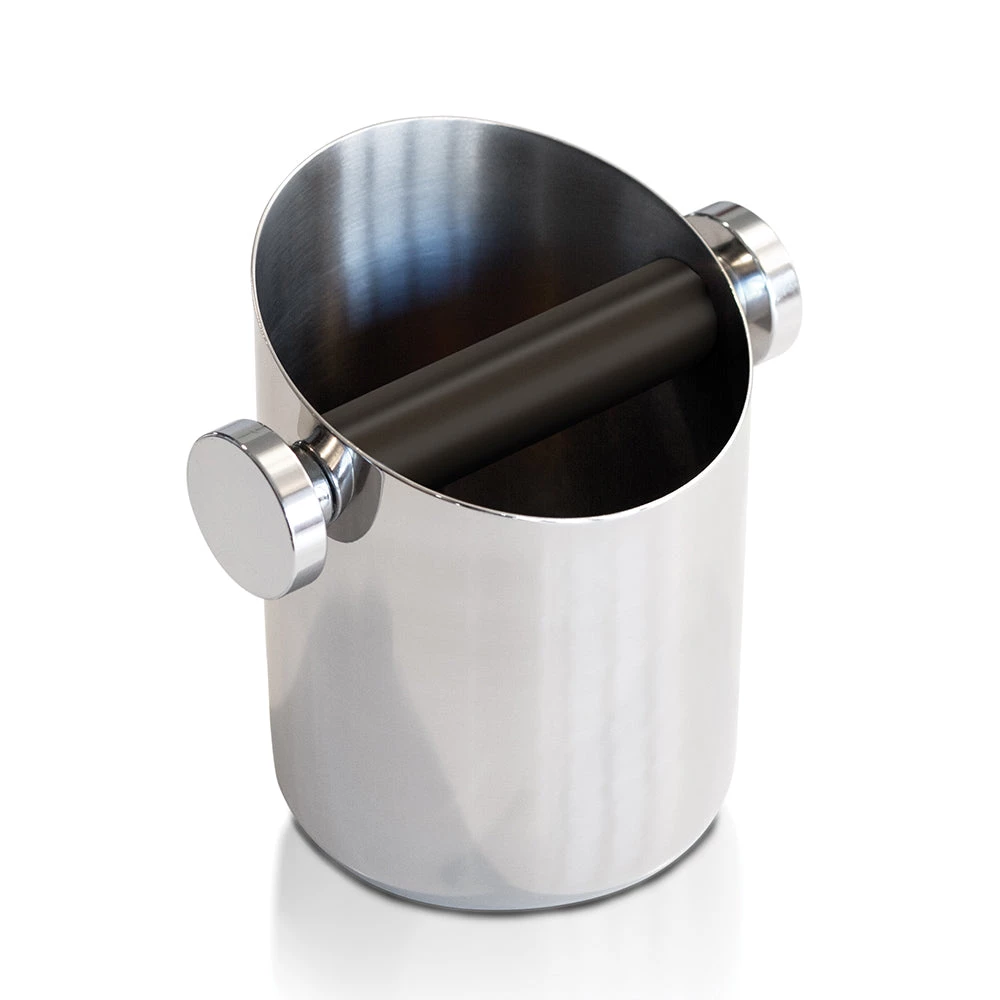 Rocket branded sturdy stainless steel knock box with beautiful mirror polished finished and non-slip rubber base. Made from high quality materials and ideal for domestic use or small cafes.