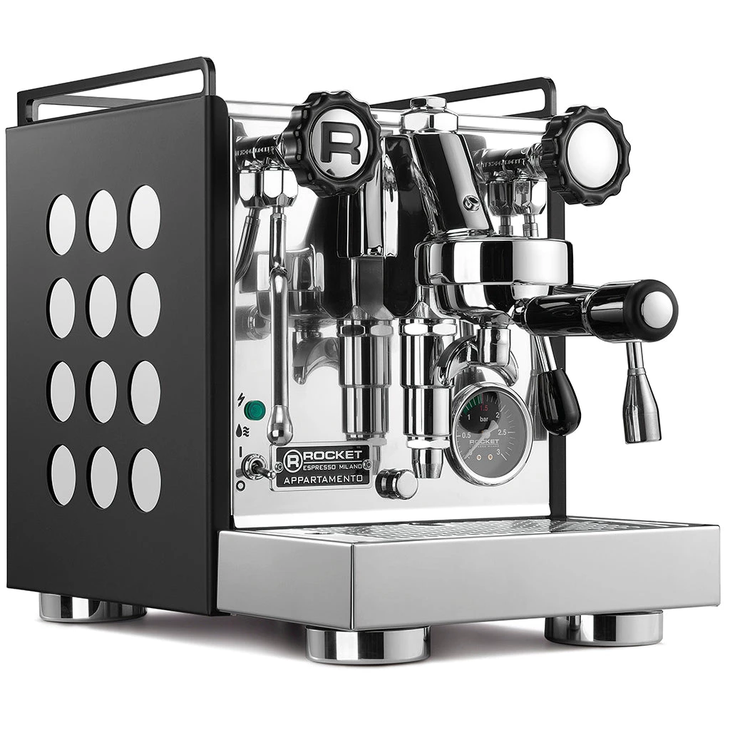 Rocket are the market leader for premium grade domestic espresso machines. The Appartamento V1 HX (Heat Exchanger) is Rocket’s compact domestic machine, geared for use in the home or office, to produce artisan quality coffee. It’s a classic Italian designed espresso machine, constructed from steel and finished in chrome. Rocket machines are known as pro-sumer (commercial grade for domestic use), delivering coffee for domestic use, that’s as close to commercial grade as you will find at this level.