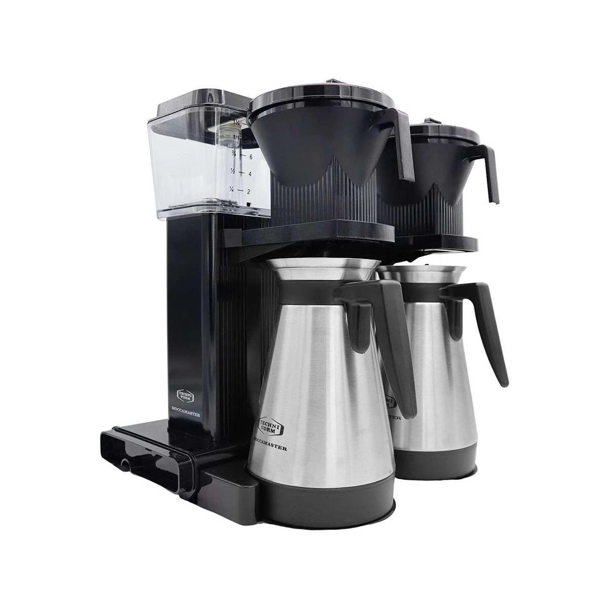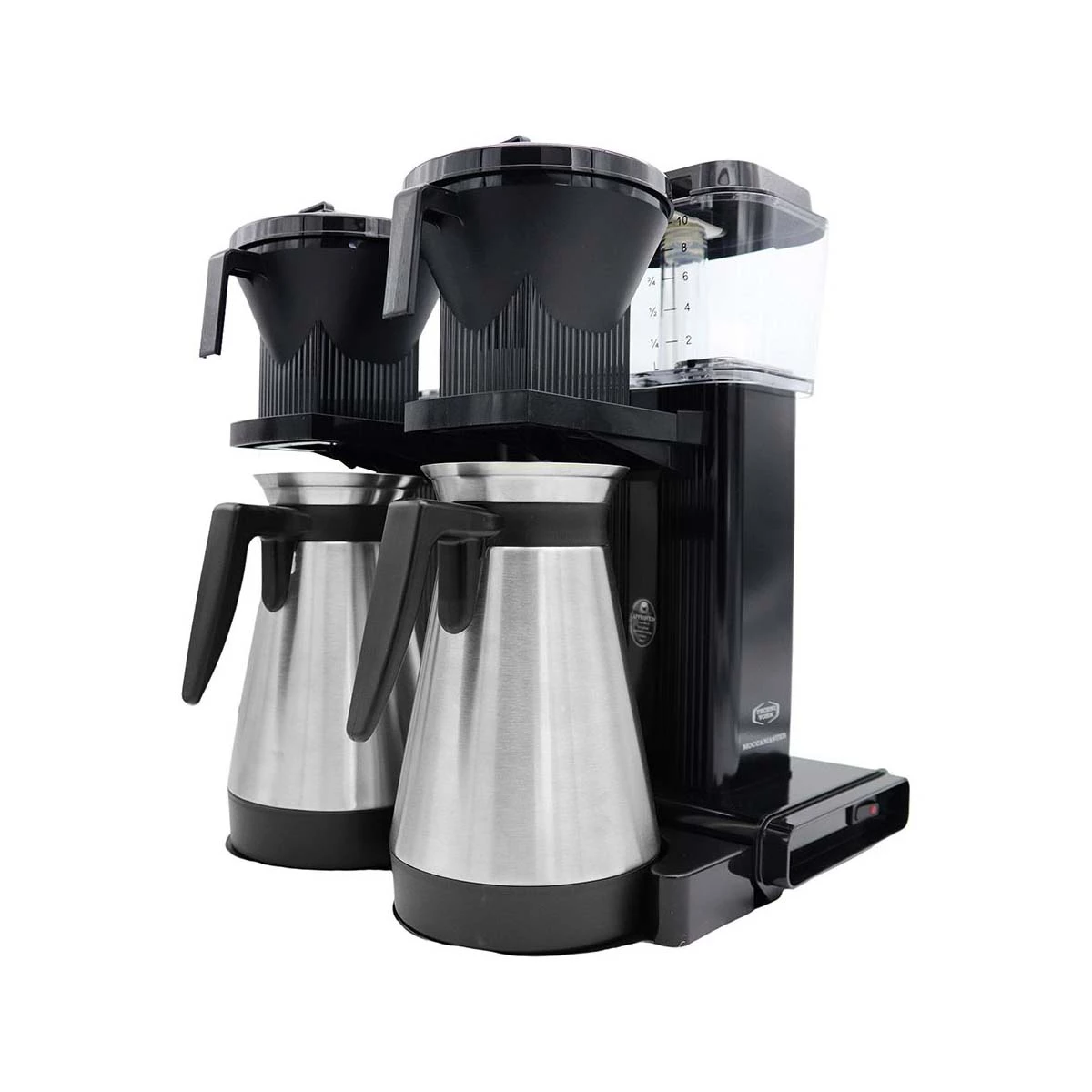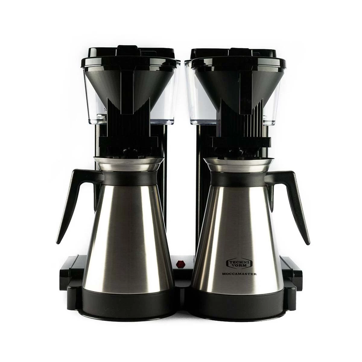 This version comes with a thermos flask on each brewer instead of the standard glass jug, aimed at slightly larger volumes.